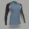 يساعد هذا التيشيرت المقاوم للأشعة فوق البنفسجية في الحد من احتكاك وتهيج الجلد بسبب ملامسة لوح التزلج أو لوح ركوب الأمواج. يمكن ارتداؤه أيضًا تحت بدلة ركوب الأمواج للحد من الاحتكاك ، خاصة حول الرقبة والإبطين. وقد أضفنا ألواح غير ملحومة أسفل الذّراعين لتقليل الاحتكاك بسبب حركات الغوص في الماء. أكدت بروتوكولات الاختبار الخاصة بنا أن التهيج كان محدودًا بالفعل خلال التمرينات التي استمرت ساعتين.