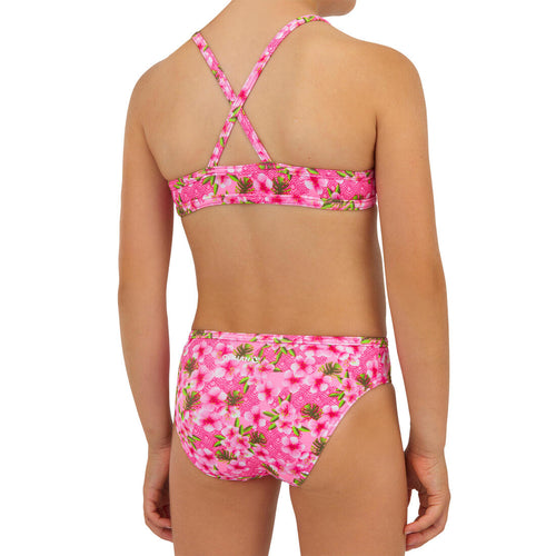 مايوه بناتي من قطعتين لركوب الأمواج بنقشة زهور مع أشرطة متقاطعة