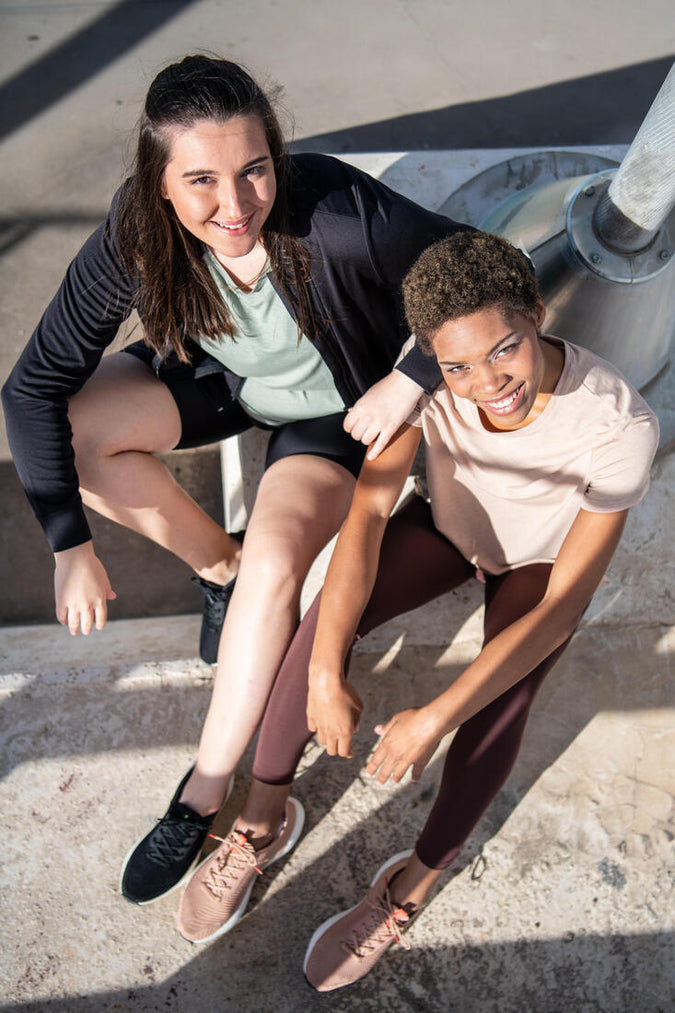 تيشيرت نسائي للجري بنسيج مسامي وناعم - رمادي داكن